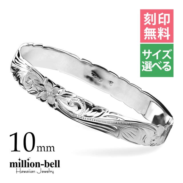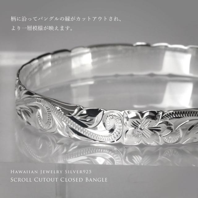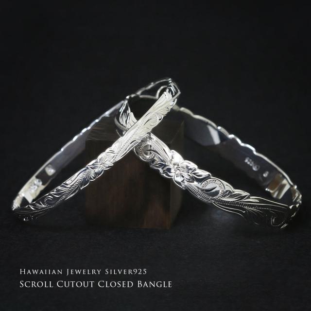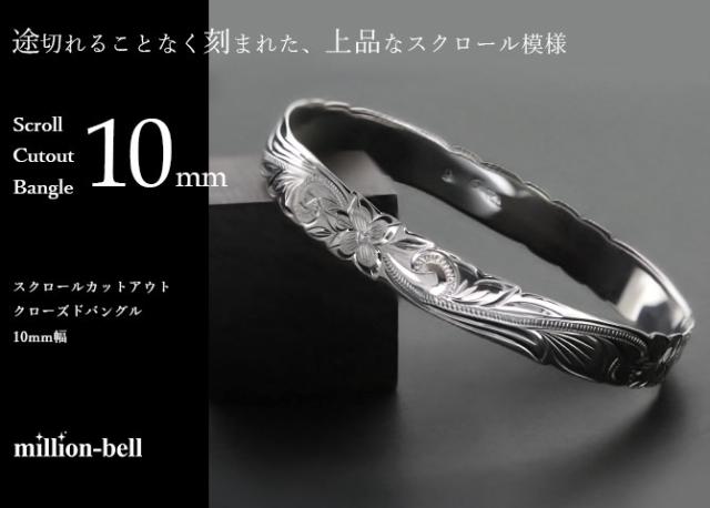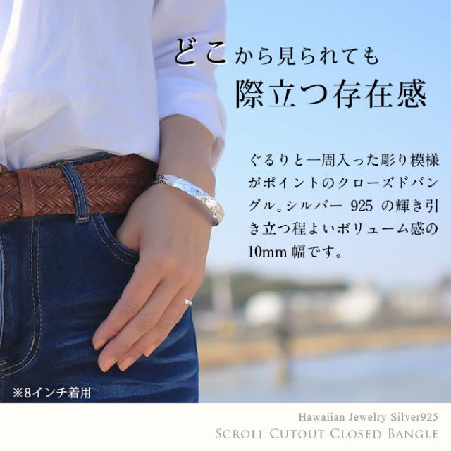 ハワイアンジュエリー バングル ハワイアンジュエリー ブレスレット 幅10mm 刻印 無料 サイズが選べる クローズバングル カットアウト スクロール シルバー925 太め 彼女 妻 女性 レディース 誕生日 プレゼント クリスマス 【品番:B1040-10】