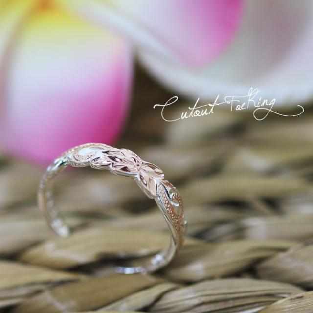 ハワイアンジュエリー トゥリング トゥーリング 足の指輪 細身 フリーサイズ シルバー925 ピンクコーティング スクロール カットアウト トウリング メール便 リング 彼女 妻 女性 レディース 誕生日 プレゼント クリスマス 【品番:TR1047】