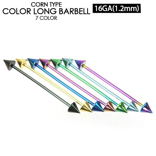【メール便対応】ロング バーベル コーン カラー 16G(1.2mm) カラーコーティング加工 ボディーピアス ボディピアス インダストリアル サージカルステンレス スパイク 軟骨ピアス 16ゲージ ┃
