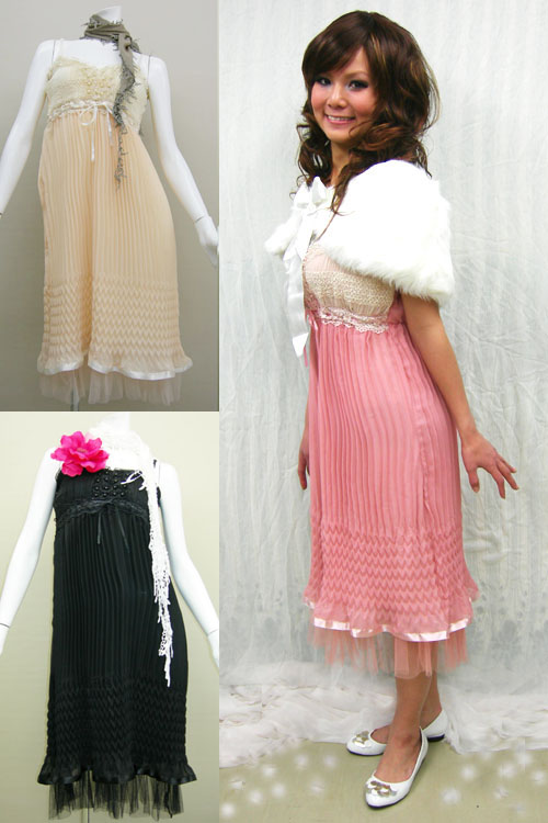 送料無料 ワンピース キャミソール キャバ嬢 デコルテ プリーツ パール リボン 美ボディライン lolita ロリータ シフォン キャミワンピ ブラウニービー joias LITIRA デッドストック 配達日時指定不可