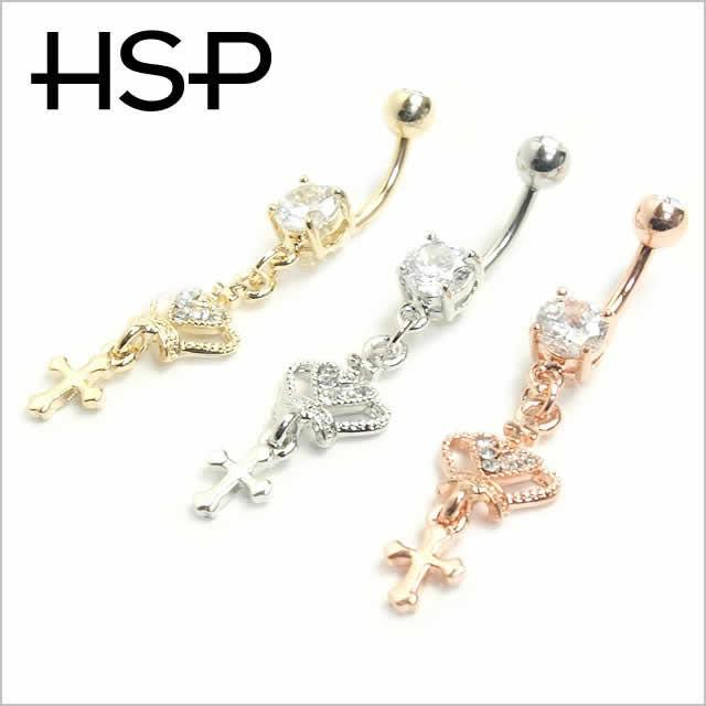 へそピアス ハートクラウン&クロス【バナナバーベル/ボディーピアス】