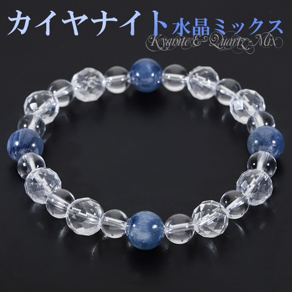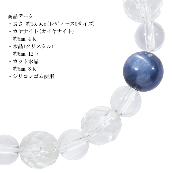 カイヤナイト カット 水晶 ブレスレット 8mm 15.5cm レディースS サイズ