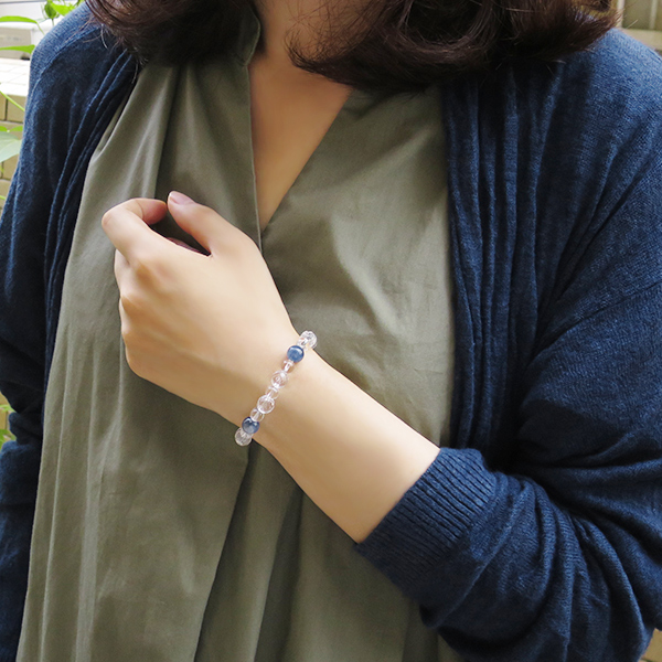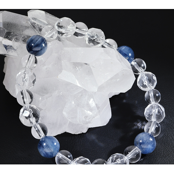 とても綺麗なカヤナイトと水晶を組み合わせたブレスレットです。