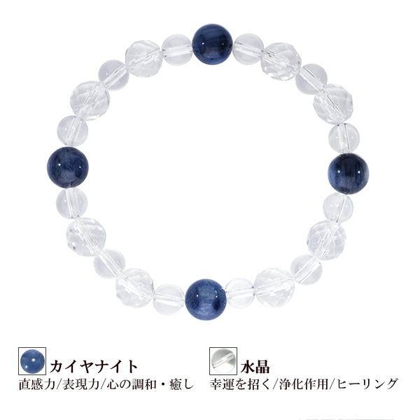 カイヤナイト カット 水晶 ブレスレット 8mm 15.5cm レディースS サイズ 天然石 パワーストーン カヤナイト クォーツ レディース ブルー 数珠ブレスレット