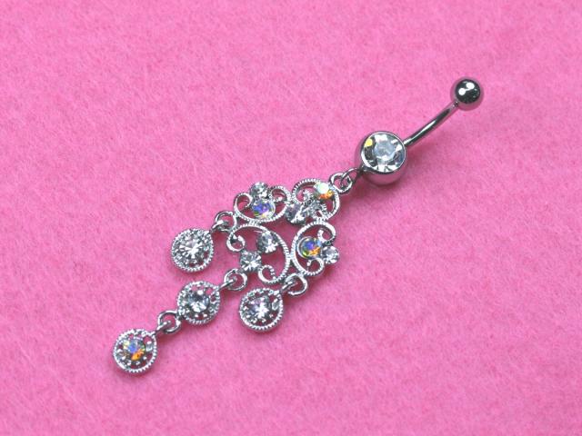 【メール便対応】ヘソピアス シャンデリア 14G(1.6mm) h529 ラインストーン ボディピアス ラインストーン ヘソピ バナナバーベル ネイブル キラキラ 14ゲージ ┃