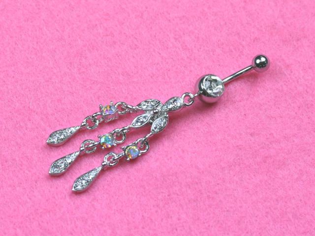 メール便 送料無料 ヘソピアス ゴージャス シャンデリア ラインストーン h511 ボディーピアス 14GA(1.6mm)┃