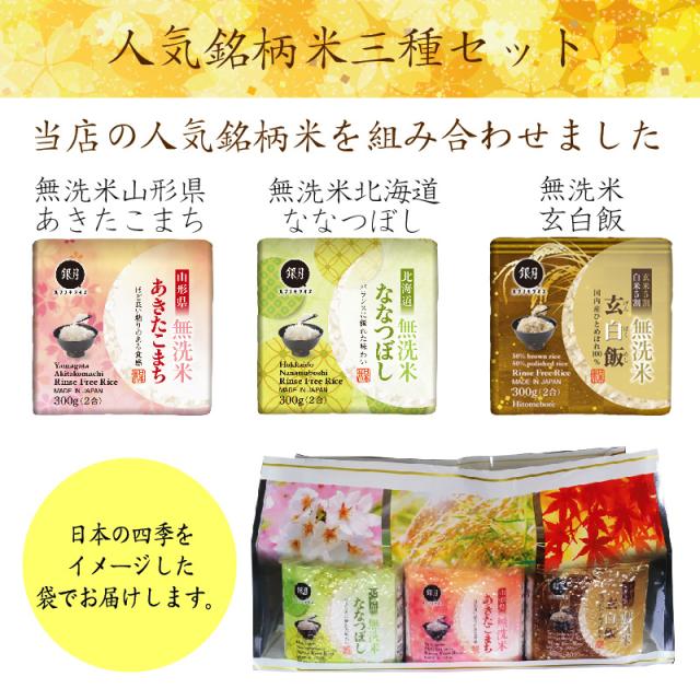 お米のギフト無洗米 当店人気銘柄3種 食べ比べ(2合300g×3袋)令和7年産(ななつぼし/山形あきたこまち/玄白飯 各1)【送料760円/北海道沖縄へのお届けは送料1520円】内祝 御歳暮 御中元 御祝 御礼