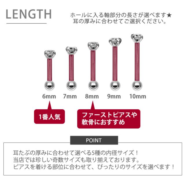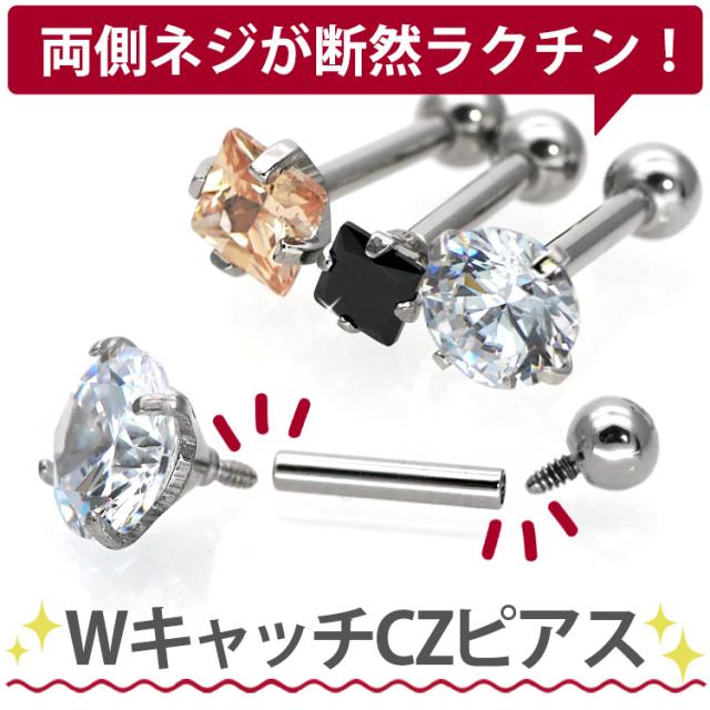 金属アレルギー対応 ボディピアス 軟膏 耳たぶ 18G 16G 14G WキャッチCZピアス ストレートバーベル キュービックジルコニア