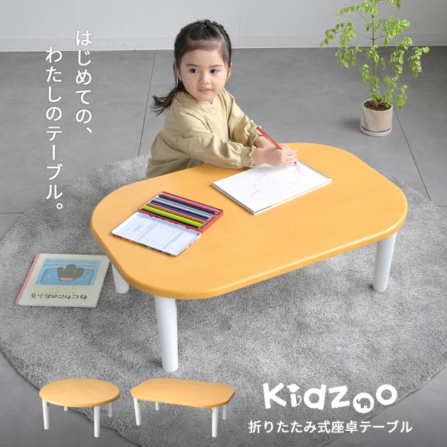 折りたたみ脚で収納しやすいKidzooのキッズ座卓テーブルです。円形と長方形の2タイプから選べ、子供部屋やリビングでのお絵描きや読書、おやつ時間に活躍します。