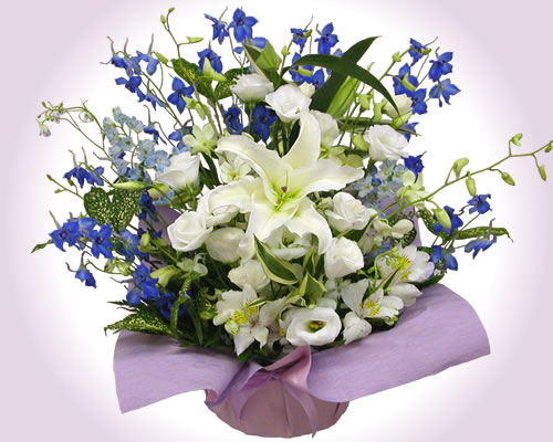 気品があるブルーのお花と清楚なイメージで故人を偲びます。