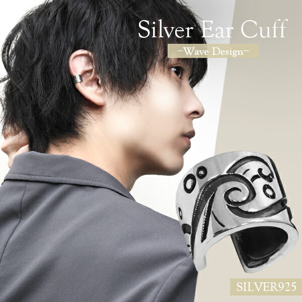 波模様のシルバーイヤーカフ 1P イヤーカーフ シルバー925 イヤークリップ イヤ-カ-フ イヤ-カフスメンズ レディース 男性女性イヤーカフ プレゼント