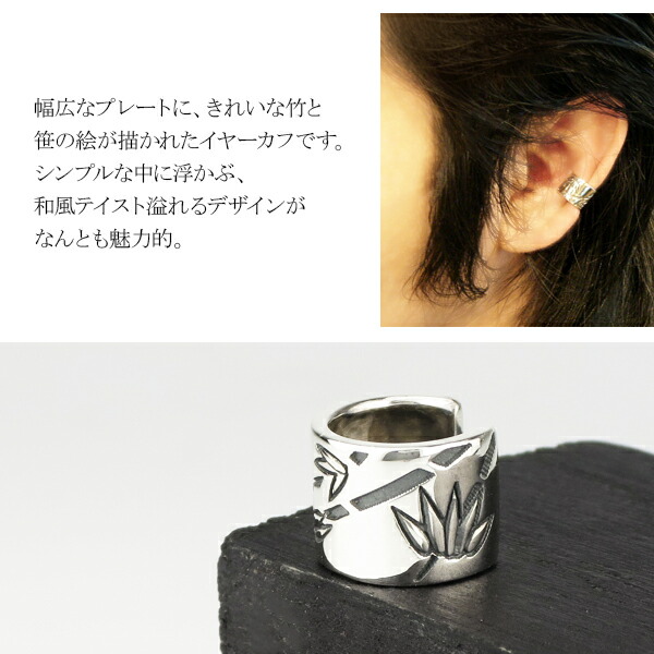 竹と笹の葉 シルバー イヤーカフ 1P 片耳用 シルバー925 イヤーカフス イヤカフ ノンホールピアス イヤリング メンズ 男性 レディース 女性 和柄 和風