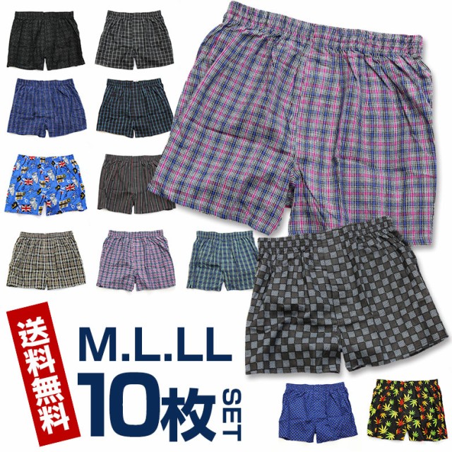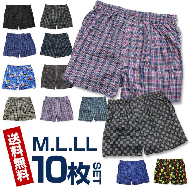 (パンツ10枚セット)M/L/LL 2枚組×5パック 柄メンズトランクス 前開きパンツ 安心の綿100% 下着/肌着/インナー