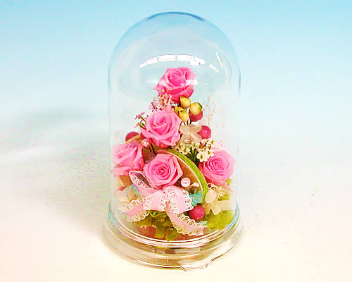 - 縦に長いデザインだったのは注文する時に分かっていましたが、生花のアレンジメントの用に横に広がりがあったら最高でした。 色合いはとても可愛かったし、ドーム型のケースがついていたので埃の心配がない所は満...