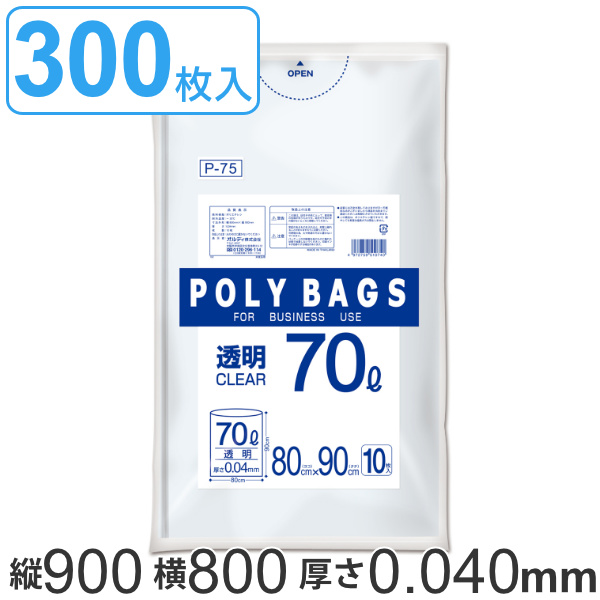 ゴミ袋 70L 90x80cm 10枚入り 厚さ0.04mm 透明 ポリバッグビジネス ( ポリ袋 ごみ袋 業務用 70リットル 90cm 80cm 10枚 クリア 透明ポリ袋 小分け袋 ポリエチレン 袋 70L )