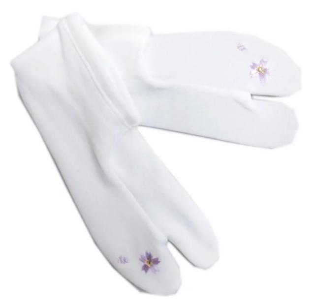 足袋 ラインストーン 刺繍 ストレッチ 桜白 フリー 振袖 成人式 卒業式 袴 着物 日本製 女性用 レディース