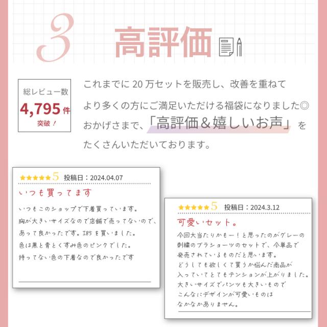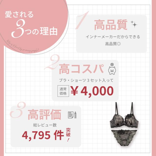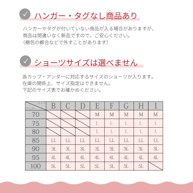 商品名(商品番号):大きいサイズ ブラジャー & ショーツ 3点 セット 下着 福袋 2025 B85 〜 I95 [メール便不可] (x-003)