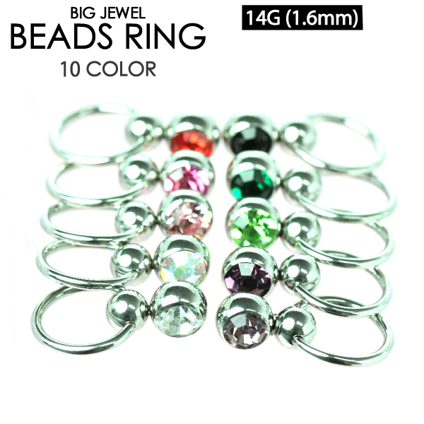 【メール便対応】キャプティブビーズリング BIGジュエル付 14G(1.6mm) サージカルステンレス316L リングピアス ビッグラインストーン モチーフ ボディピアス ボディーピアス ┃