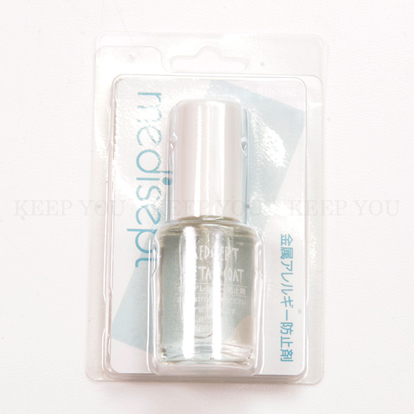 【メタルコート】ピアス等の皮膚に触れる金属部分に塗布してください。20分程度で透明のアクリル皮膜ができて金属イオンの侵入を防ぎます。 塗布後、乾いてからご使用ください。研磨された金属表面に塗布してもはげ落ちにくいように薬剤を調合しております。