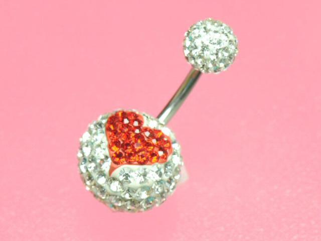 メール便 送料無料 ゴージャス キラキラ ヘソピアス ハート 14GA(1.6mm)【ボディーピアス スワロフスキー クリスタル ラインストーン へそピアス ヘソピ バナナバーベル ネイブル キラキラ】┃