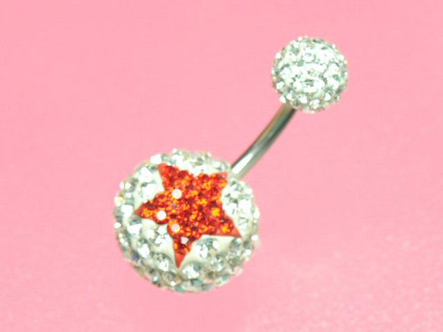 メール便 送料無料 ゴージャス キラキラ ヘソピアス レッドスター 14GA(1.6mm) 星【ボディーピアス スワロフスキー クリスタル ラインストーン へそピアス ヘソピ バナナバーベル ネイブル キラキラ】┃