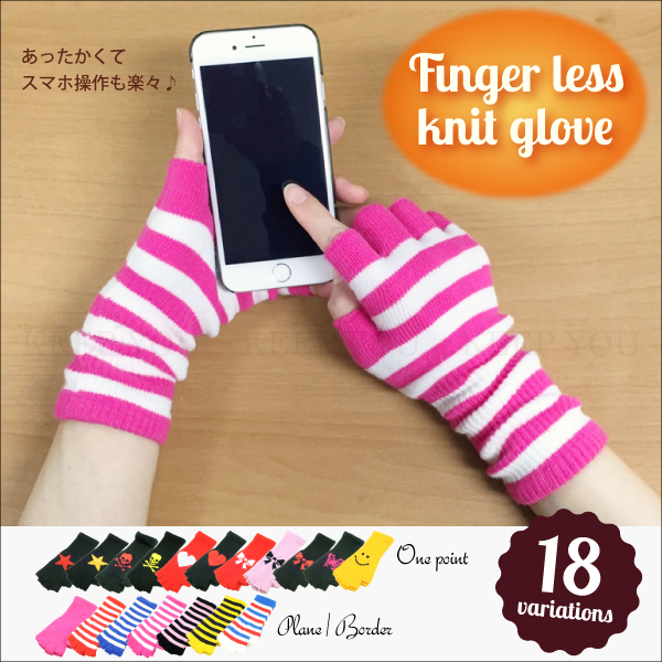 【メール便対応】指なしグローブ 指なし手袋 ワンポイント・無地・ボーダー柄 ニット手袋 i Phone スマートフォンの操作も楽々便利 ┃