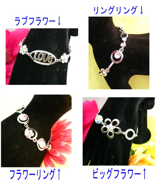 送料無料 激安 セール ブレスレット フラワー おしゃれ かわいい LOVE ラブブレス クリスタル キラキラ シルバー チェーン フリーサイズ