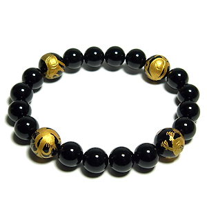 ◆風水・四神獣金手彫りオニキス 12mm玉◆ オニキスブレスレット (メンズLLサイズ)