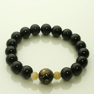 ◆金龍彫りオニキス12mm玉◆ルチル・オニキスブレスレット 17cm〜20cm(メンズM〜LLサイズ)
