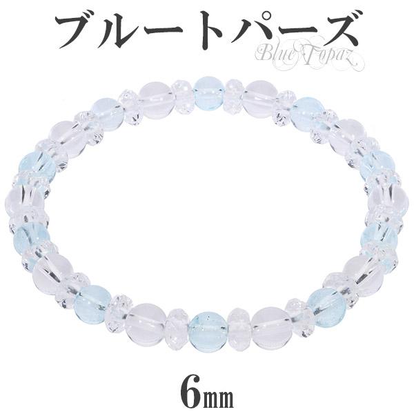 ブルートパーズ カット 水晶 ブレスレット 6mm 17cm レディースM サイズ 11月 誕生石 トパーズ 天然石 パワーストーン レディース 女性 数珠ブレスレット