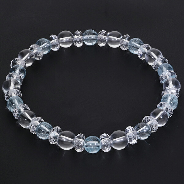 とても綺麗な6mmのブルートパーズと水晶を組み合わせた、細身で扱いやすいブレスレットです。