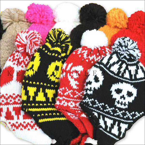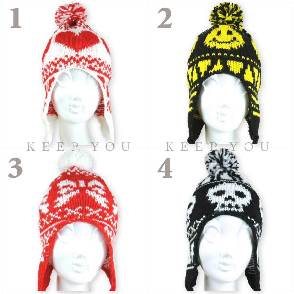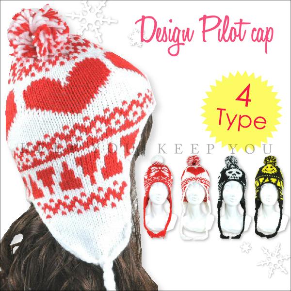 【メール便対応】パイロット キャップ 【ハート/スマイル/リボン/スカル ニット 帽子 パイロット 帽子 防寒対策】 Pilot Cap ┃