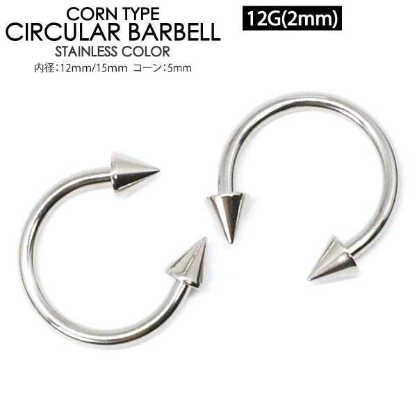 【メール便対応】サーキュラーバーベル コーンスパイク12G(2mm) サージカルステンレス316L 定番 ボディピアス ボディーピアス 12ゲージ【軟骨ピアス トラガス イヤーロブ ヘリックス リップ タンリム ロブ】 ┃