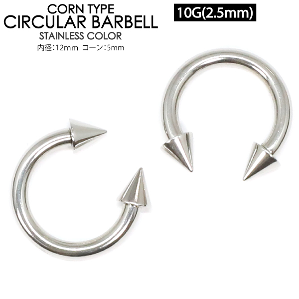 【メール便対応】サーキュラーバーベル コーンスパイク10G(2.5mm) サージカルステンレス316L 定番 ボディピアス ボディーピアス 10ゲージ【軟骨ピアス トラガス イヤーロブ ヘリックス リップ タンリム ロブ】 ┃