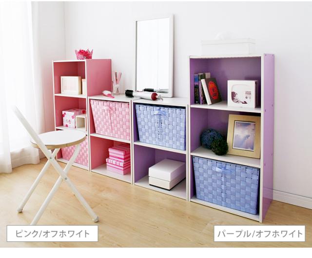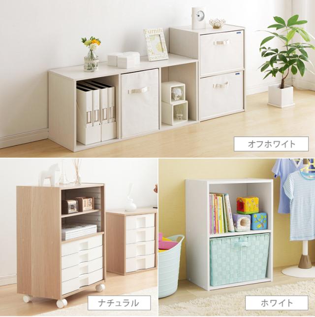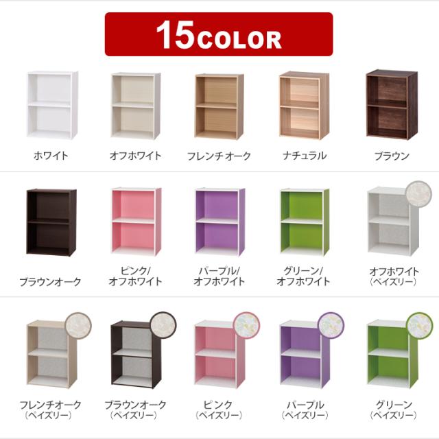 ※ピンク/オフホワイト、グリーン/オフホワイト、パープル/オフホワイトは、天板・底板・棚板が木目調(オフホワイト)になっています。