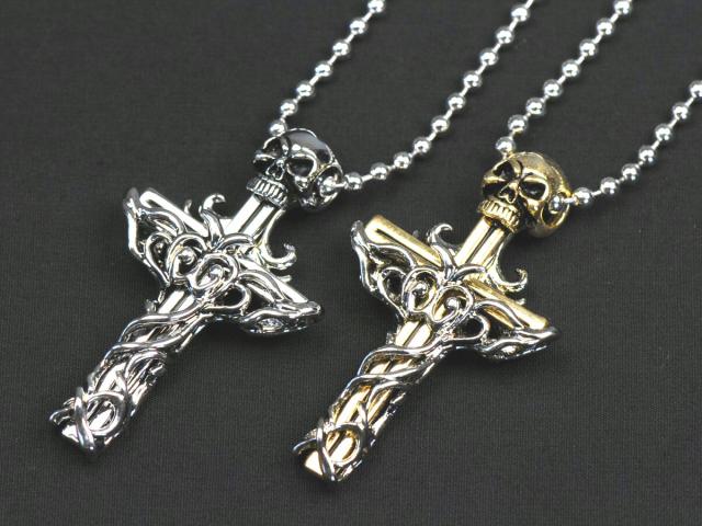 【メール便対応】スカル ドクロ クロス(十字架) ペンダント 【メタルネックレス】skull-1 ┃