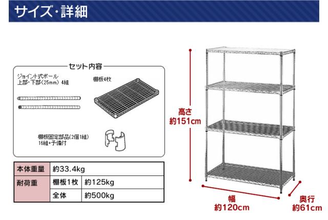 棚板・ポール:スチール(クロームメッキ仕上げ)