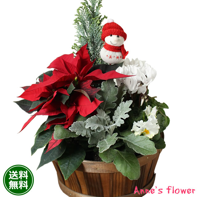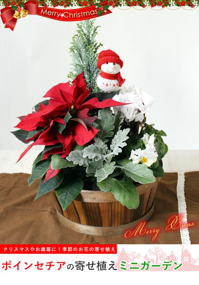 花 フラワーギフト クリスマス 鉢花 寄せ植え ポインセチアの寄せ植えミニガーデン 送料無料 生花 プレゼント ギフト 贈り物 正月 年越し 雪だるま スノーマン サンタ Xmas 誕生日 結婚記念日 お祝い お返し 開店 パーティ 飾り 雑貨