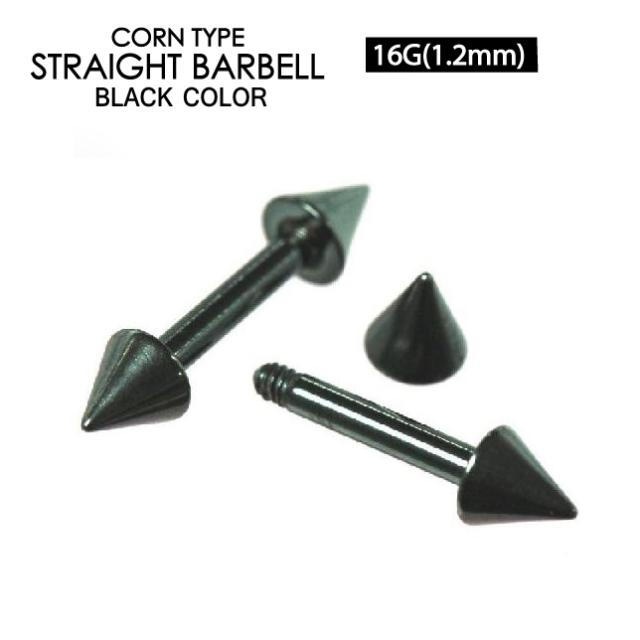【メール便対応】ボディピアス バーベル ブラック コーン 16GA(1.2mm)シャフト8mm カラーコーティング加工 ストレート ボディーピアス 軟骨ピアス イヤーロブ トラガス┃