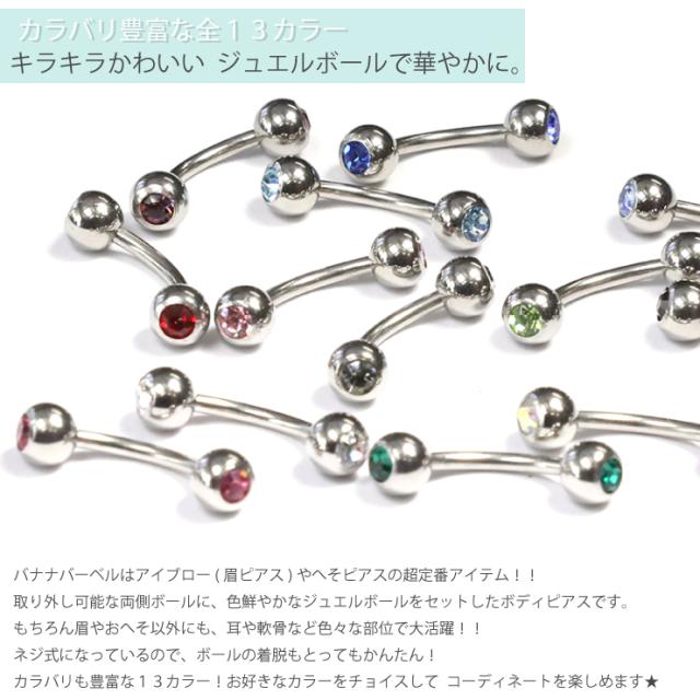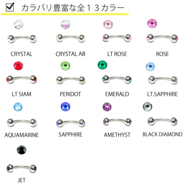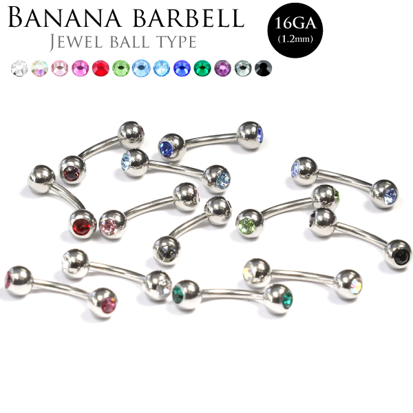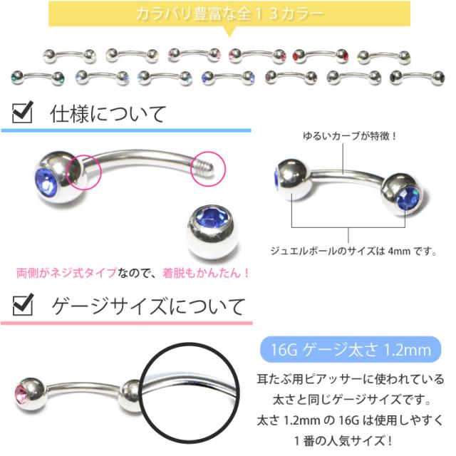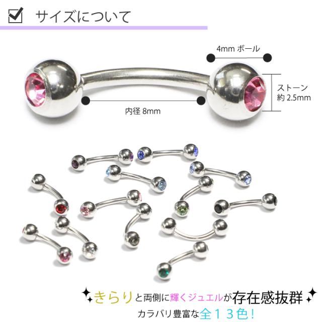 【メール便対応】ボディピアス バナナバーベル ダブルジュエル付 16G(1.2mm) シャフト8mm×4mm玉 サージカルステンレス316L(医療用) ラインストーン アイブロウ【ヘソピ イヤーロブ ネイブル 臍 キラキラ】 ┃