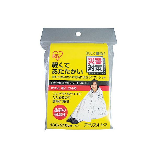 アルミブランケット 防災 130×210cm 極薄 アルミシート 保温シート 防寒シート 軽量 コンパクト 防災グッズ 防災用品 災害対策 アウトドア エマージェンシーシート サバイバルシート アルミ毛布 非常時保温アルミシート アイリスオーヤマ JTH-1321 *