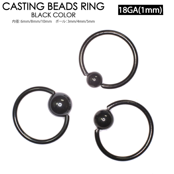 【メール便対応】キャプティブビーズリング ブラック18G(1mm)BLACK カラーコーティング キャスティング ボディーピアス BCR CBR リングピアス 定番 クール シンプル デザイン イヤーロブ┃