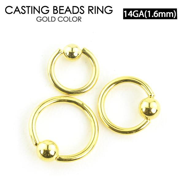 【メール便対応】キャプティブビーズリング ゴールド 14G(1.6mm) GOLD カラーコーティング キャスティング サージカルステンレス ボディーピアス BCR CBR リングピアス イヤーロブ 14ゲージ┃