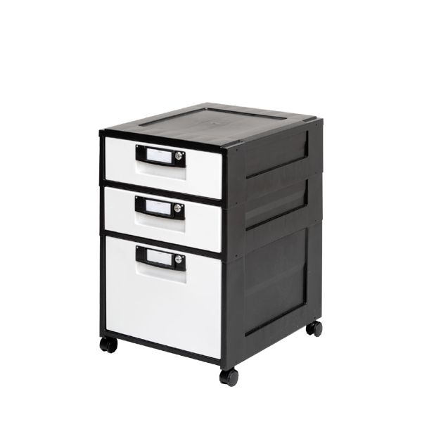 ファイル収納にぴったりな、プラスチック製オフィスキャビネット、カギ付きです。