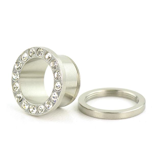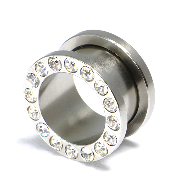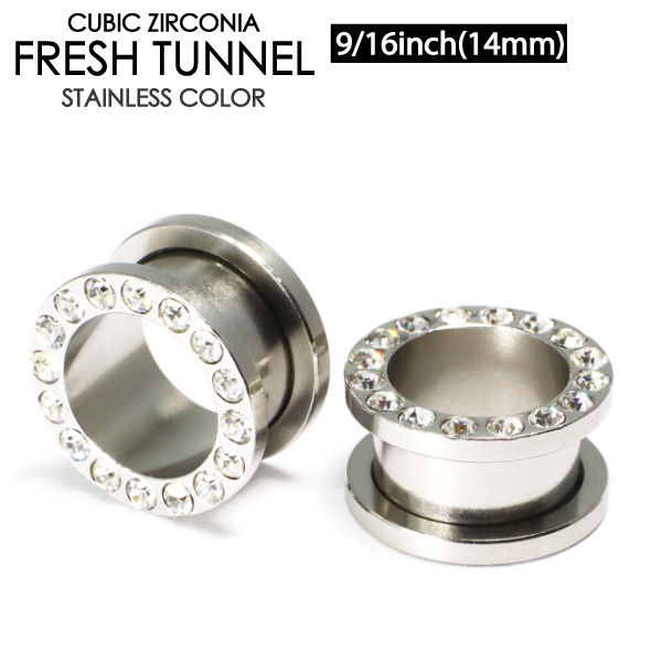 メール便 送料無料 フフレッシュトンネル ラインストーン仕様 9/16inch(14mm) サージカルステンレス316L ボディピアス【ジュエル付 ロブ アイレット イヤーレット】14ミリ ┃