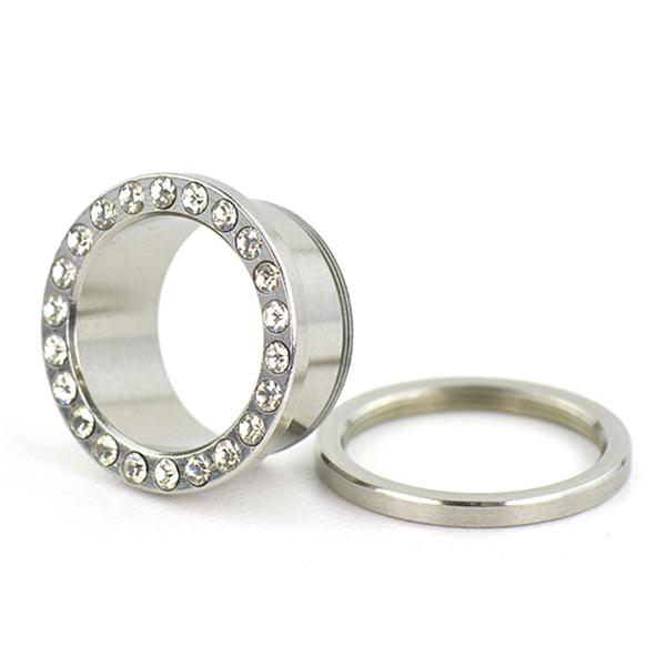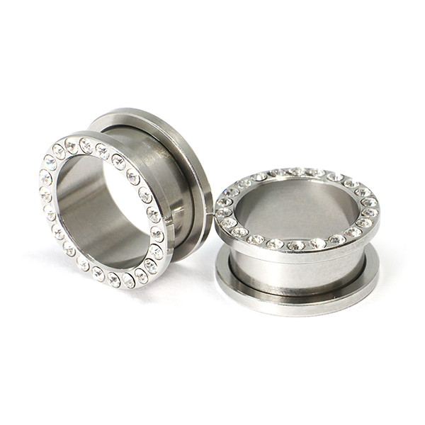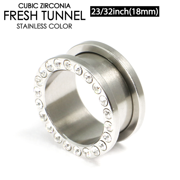 メール便 送料無料 フフレッシュトンネル ラインストーン仕様 23/32inch(18mm) サージカルステンレス316L ボディピアス【ジュエル付 ロブ アイレット イヤーレット】18ミリ ┃
