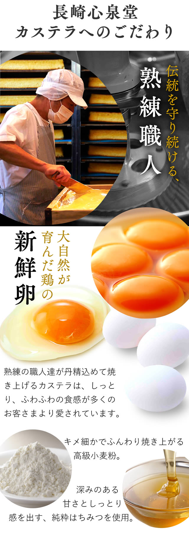 ●原材料:鶏卵(国産)、砂糖、小麦粉、水飴、ザラメ糖、蜂蜜、(一部に卵・小麦を含む)