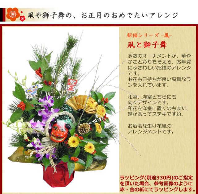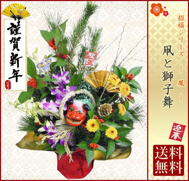 お正月 迎春 2026 招福シリーズ -鳳- おおとり 凧と獅子舞 送料無料お正月のお花 花 アレンジメント 正月飾り 門松 正月 お歳暮 年越し 年賀