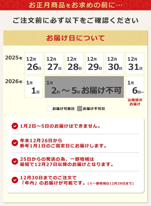 ※お届けは12月26日から。年内のお届けは12月30日受付分までとなります。