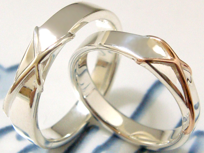 やわらかい輝きシルバー925&シルバー925に女性らしいピンクゴールドコーティングを施したクロスラインが特徴!シンプルデザインリング。